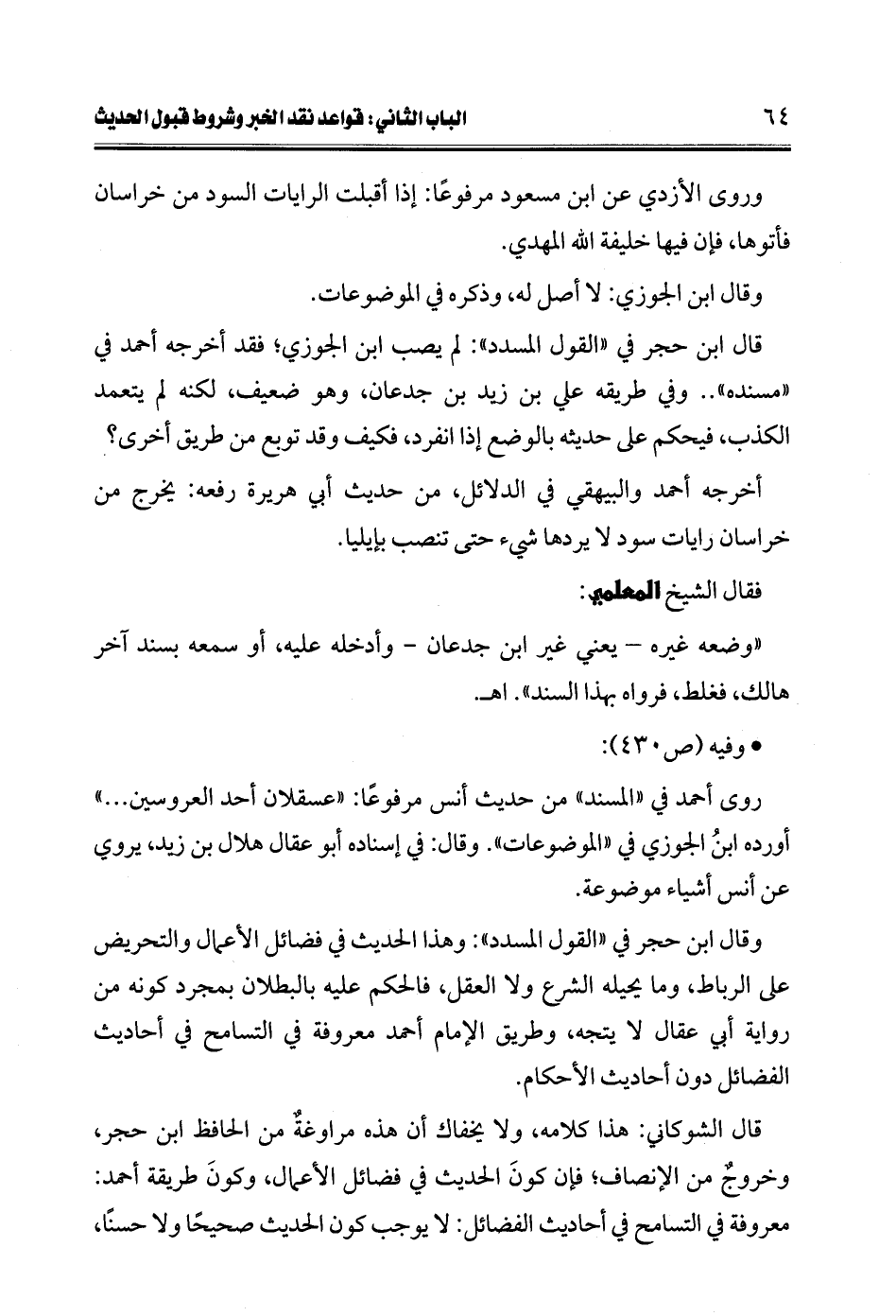 قال الشوكاني: هذا كلامه، ولا يخفاك أن هذه مراوغةٌ من الحافظ ابن حجر، وخروجٌ من الإنصاف؛ فإن كونَ الحديث في فضائل الأعمال، وكونَ طريقة أحمد: معروفة في التسامح في أحاديث الفضائل: لا يوجب كون الحديث صحيحًا ولا حسنًا،