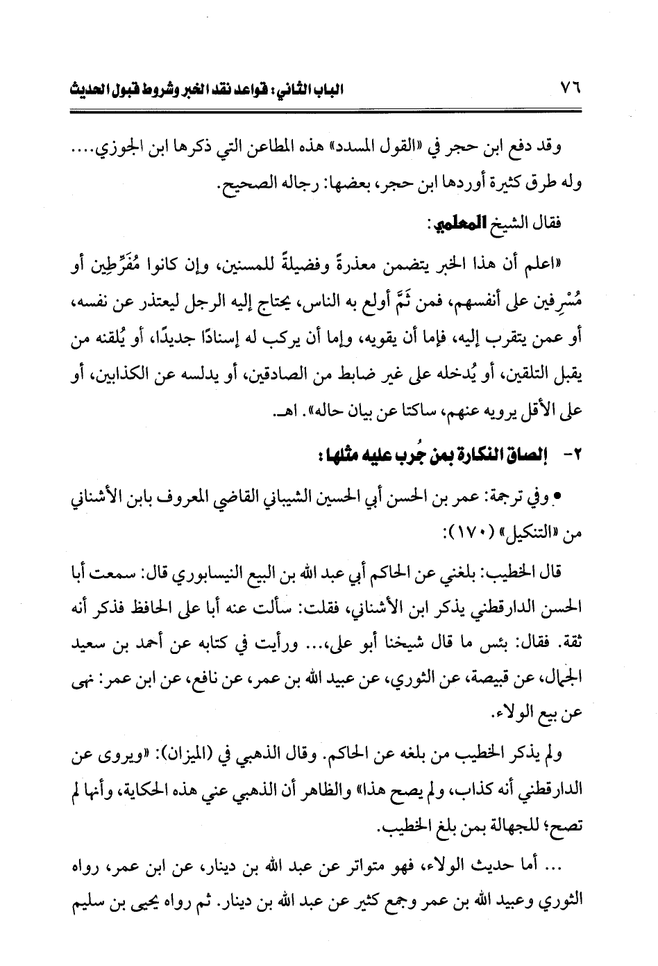 • وفي ترجمة: عمر بن الحسن أبي الحسين الشيباني القاضي المعروف بابن الأشناني من "التنكيل" (170):