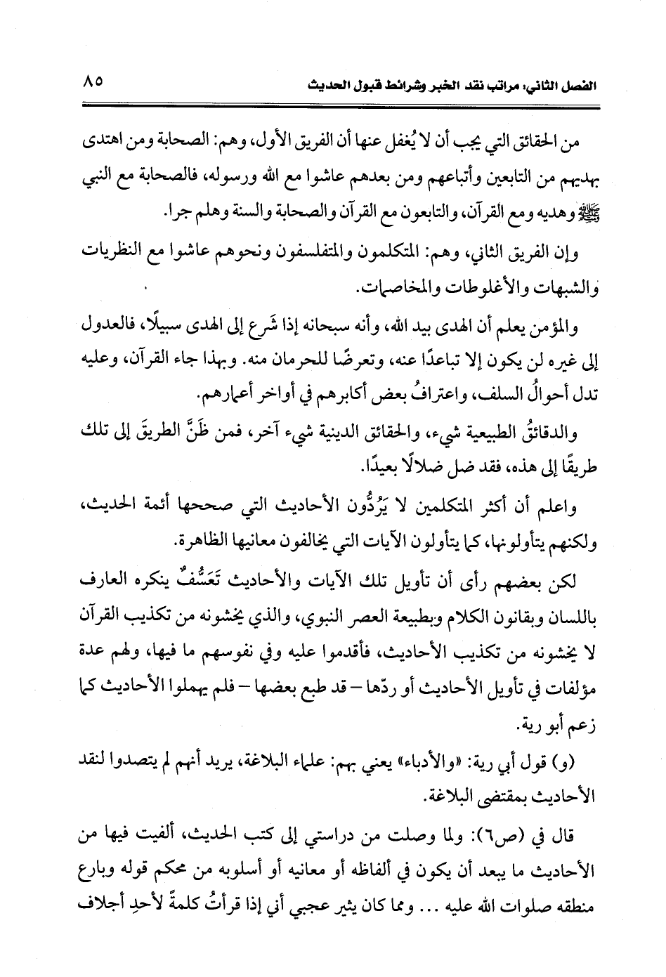واعلم أن أكثر المتكلمين لا يَرُدُّون الأحاديث التي صححها أئمة الحديث، ولكنهم يتأولونها، كما يتأولون الآيات التي يخالفون معانيها الظاهرة.