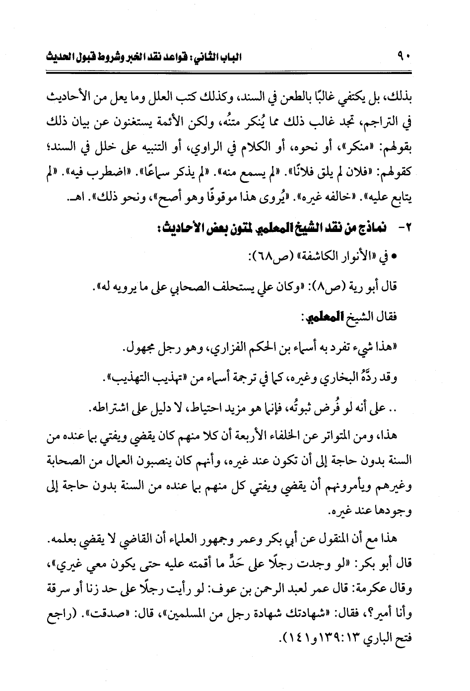 2 - نماذج من نقد الشيخ المعلمي لمتون بعض الأحاديث: