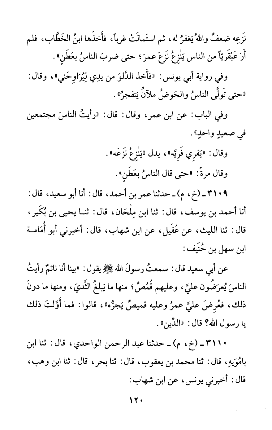 3110 - (خ، م) - حدثنا عبد الرحمن الواحدي، قال: ثنا ابن بامويه، قال: ثنا محمد بن يعقوب، قال: ثنا بحر، قال: ثنا ابن وهب، قال: أخبرني يونس، عن ابن شهاب: