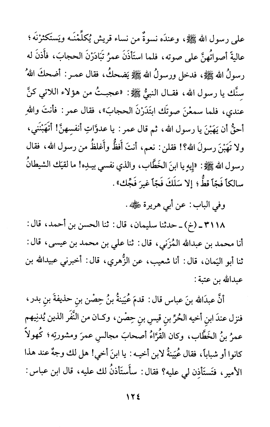 3118 - (خ) - حدثنا سليمان، قال: ثنا الحسن بن أحمد، قال: أنا محمد بن عبد الله المزني، قال: ثنا علي بن محمد بن عيسى، قال: ثنا أبو اليمان، قال: أنا شعيب، عن الزهري، قال: أخبرني عبيد الله بن عبد الله بن عتبة: