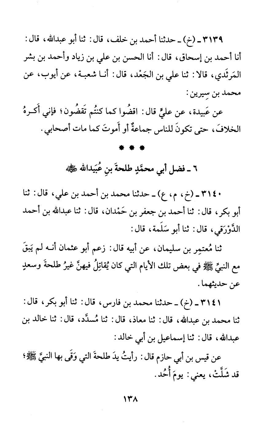 3141 - (خ) - حدثنا محمد بن فارس، قال: ثنا أبو بكر، قال: ثنا محمد بن عبد الله، قال: ثنا معاذ، قال: ثنا مسدد، قال: ثنا خالد بن عبد الله، قال: ثنا إسماعيل بن أبي خالد: