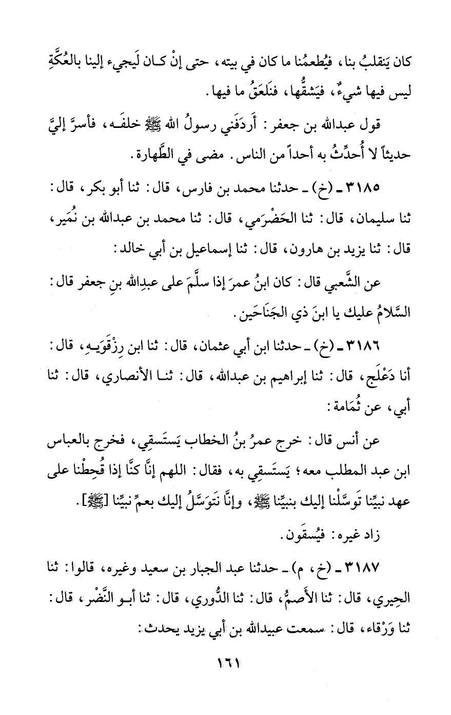 3185 - (خ) - حدثنا محمد بن فارس، قال: ثنا أبو بكر، قال: ثنا سليمان، قال: ثنا الحضرمي، قال: ثنا محمد بن عبد الله بن نمير، قال: ثنا يزيد بن هارون، قال: ثنا إسماعيل بن أبي خالد: