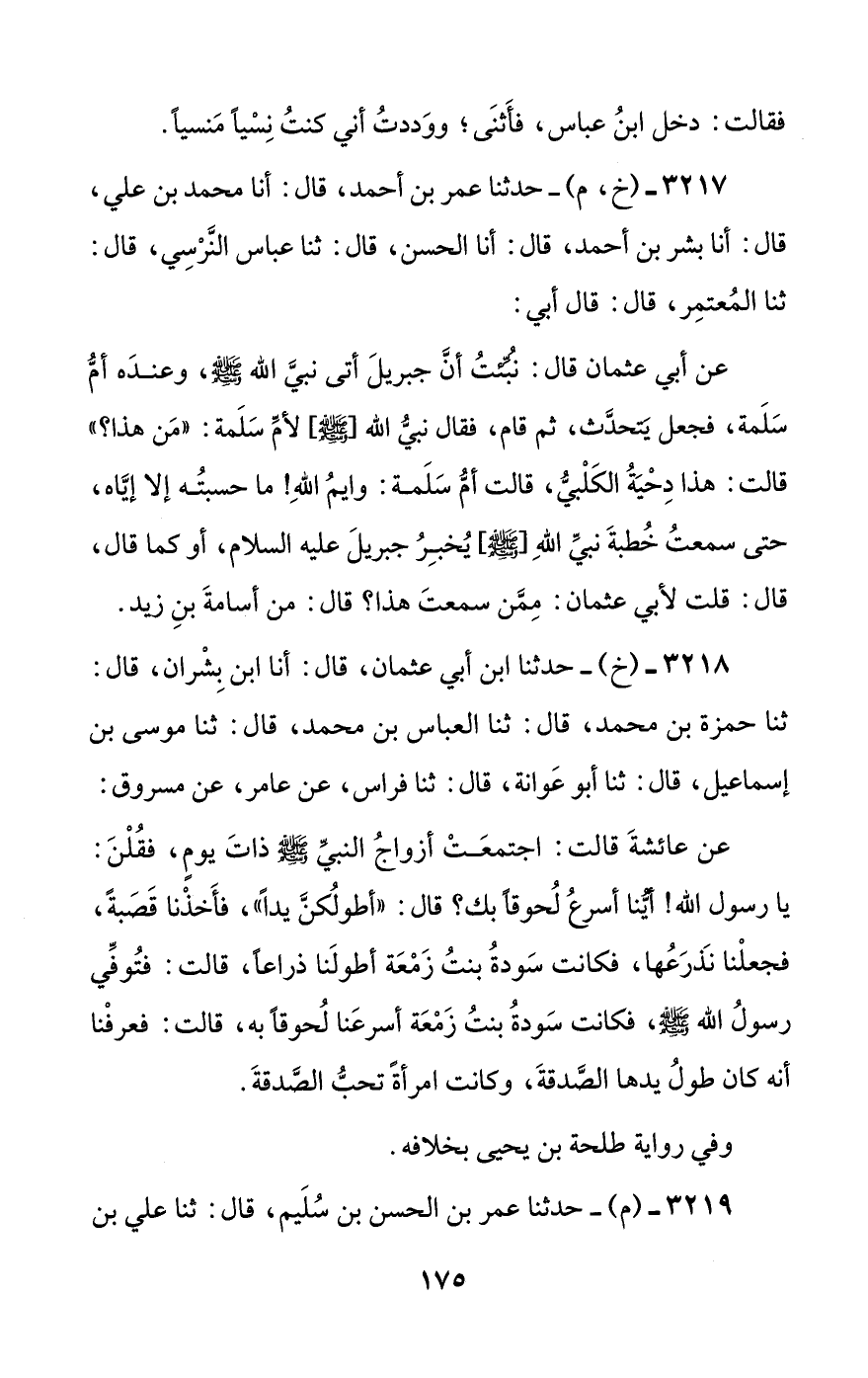 3217 - (خ، م) - حدثنا عمر بن أحمد، قال: أنا محمد بن علي، قال: أنا بشر بن أحمد، قال: أنا الحسن، قال: ثنا عباس النرسي، قال: ثنا المعتمر، قال: قال أبي: