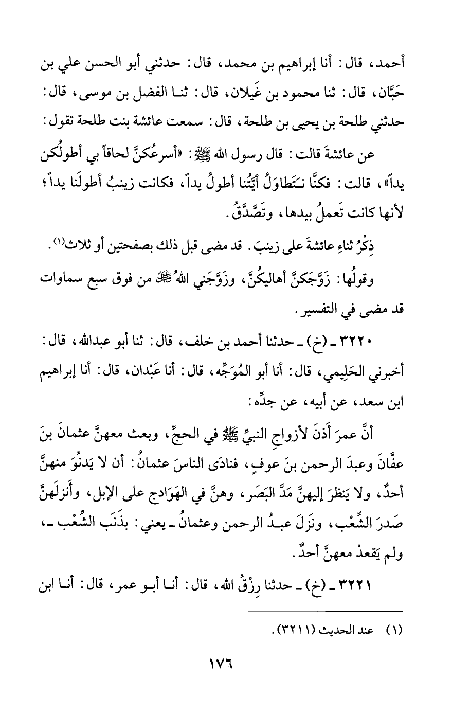 3220 - (خ) - حدثنا أحمد بن خلف، قال: ثنا أبو عبد الله، قال: أخبرني الحليمي، قال: أنا أبو الموجه، قال: أنا عبدان، قال: أنا إبراهيم بن سعد، عن أبيه، عن جده:
