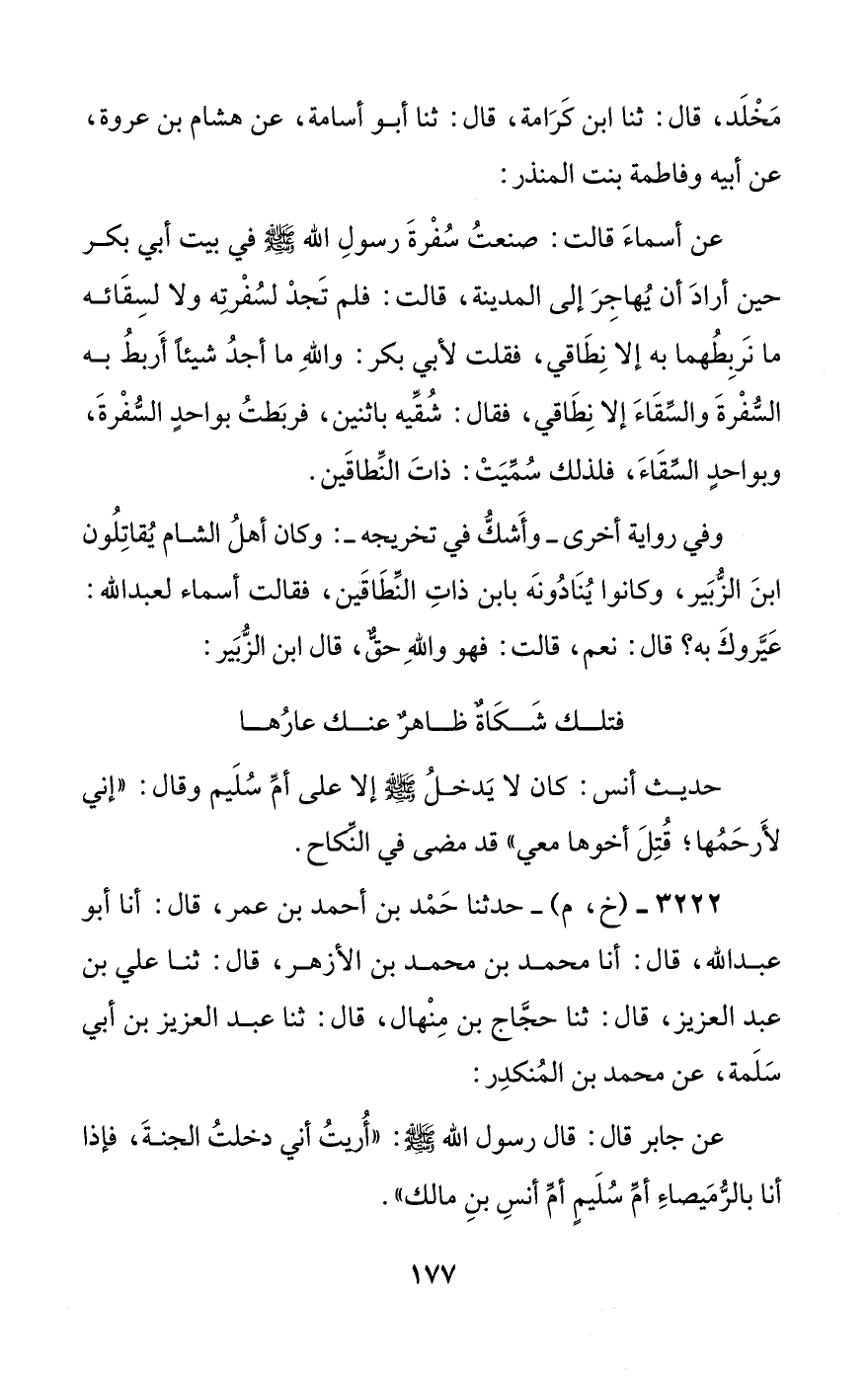3222 - (خ، م) - حدثنا حمد بن أحمد بن عمر، قال: أنا أبو عبد الله، قال: أنا محمد بن محمد بن الأزهر، قال: ثنا علي بن عبد العزيز، قال: ثنا حجاج بن منهال، قال: ثنا عبد العزيز بن أبي سلمة، عن محمد بن المنكدر: