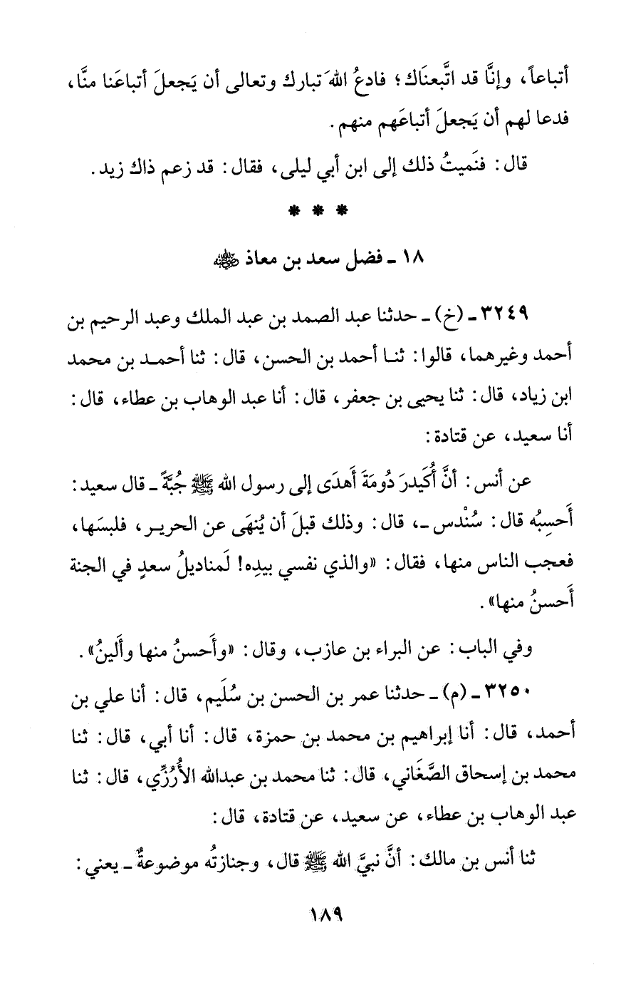 ثنا أنس بن مالك: أن نبي الله صلى الله عليه وسلم قال: وجنازته موضوعة -يعني: #190# سعد بن معاذ-: ((اهتز لها عرش الرحمن)).