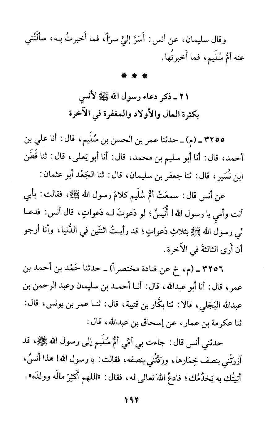 [21] ذكر دعاء رسول الله صلى الله عليه وسلم لأنس بكثرة المال والأولاد والمغفرة في الآخرة