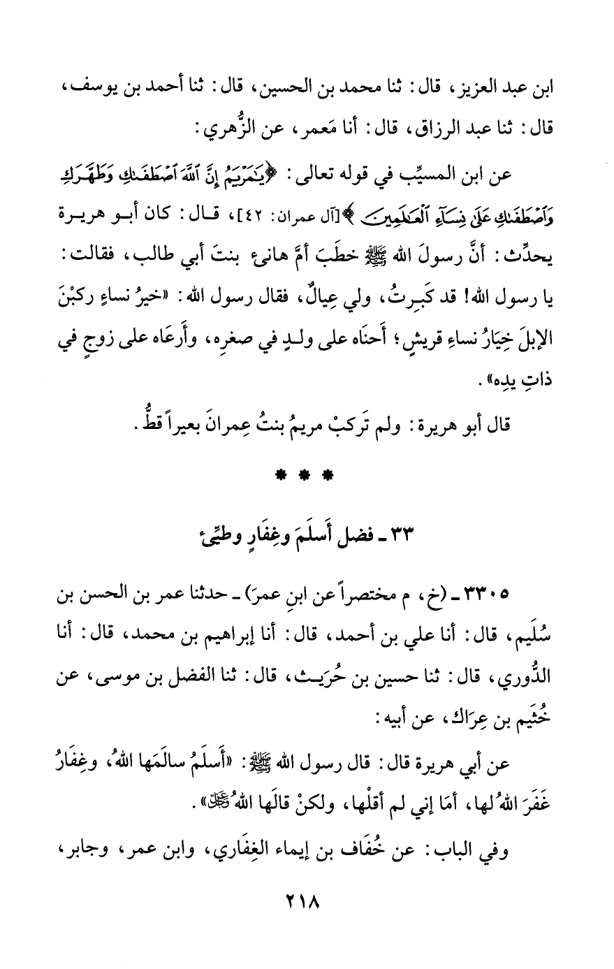 3305 - (خ، م مختصرا عن ابن عمر) - حدثنا عمر بن الحسن بن سليم، قال: أنا علي بن أحمد، قال: أنا إبراهيم بن محمد، قال: أنا الدوري، قال: ثنا حسين بن حريث، قال: ثنا الفضل بن موسى، عن خثيم بن عراك، عن أبيه: