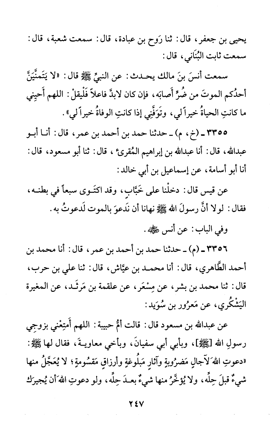 3355 - (خ، م) - حدثنا حمد بن أحمد بن عمر، قال: أنا أبو عبد الله، قال: أنا عبد الله بن إبراهيم المقرئ، قال: ثنا أبو مسعود، قال: أنا أبو أسامة، عن إسماعيل بن أبي خالد: