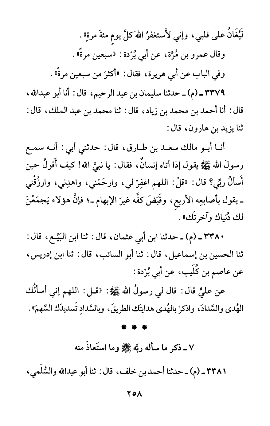 عن علي قال: قال لي رسول الله صلى الله عليه وسلم: ((قل: اللهم إني أسألك الهدى والسداد، واذكر بالهدى هدايتك الطريق، وبالسداد تسديدك السهم)).