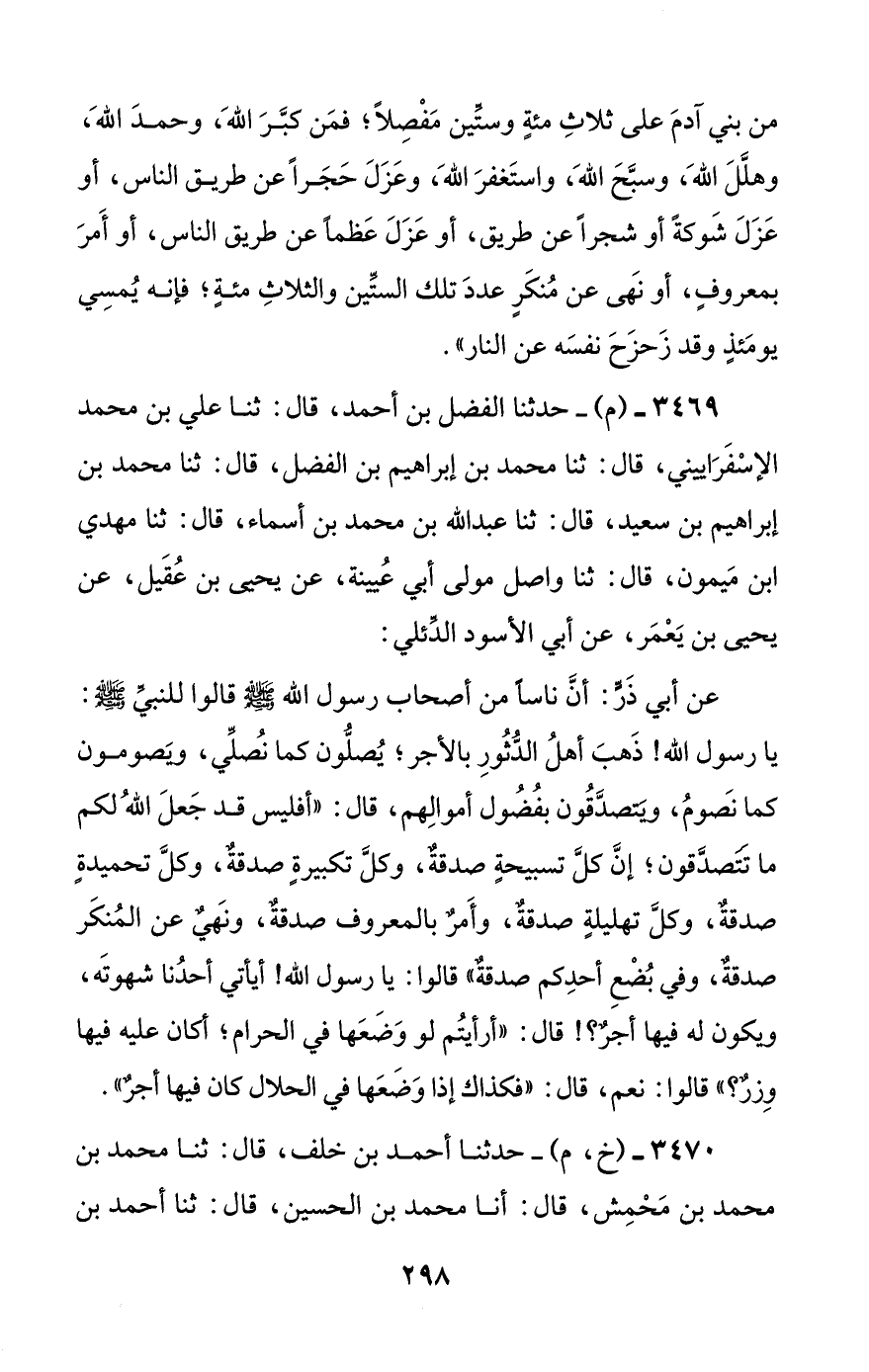3469 - (م) - حدثنا الفضل بن أحمد، قال: ثنا علي بن محمد الإسفراييني، قال: ثنا محمد بن إبراهيم بن الفضل، قال: ثنا محمد بن إبراهيم بن سعيد، قال: ثنا عبد الله بن محمد بن أسماء، قال: ثنا مهدي بن ميمون، قال: ثنا واصل مولى أبي عيينة، عن يحيى بن عقيل، عن يحيى بن يعمر، عن أبي الأسود الدئلي:
