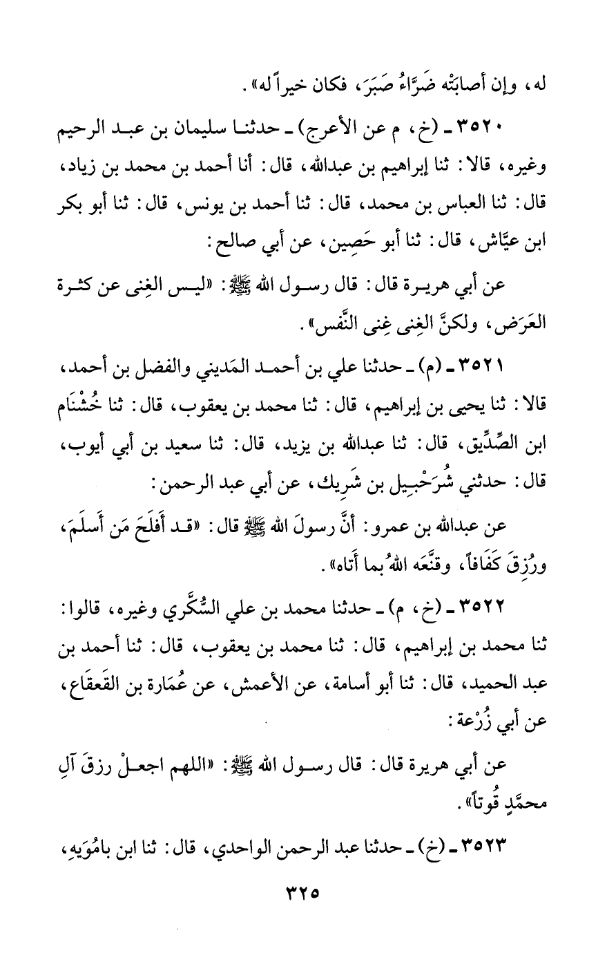 3522 - (خ، م) - حدثنا محمد بن علي السكري وغيره، قالوا: ثنا محمد بن إبراهيم، قال: ثنا محمد بن يعقوب، قال: ثنا أحمد بن عبد الحميد، قال: ثنا أبو أسامة، عن الأعمش، عن عمارة بن القعقاع، عن أبي زرعة: