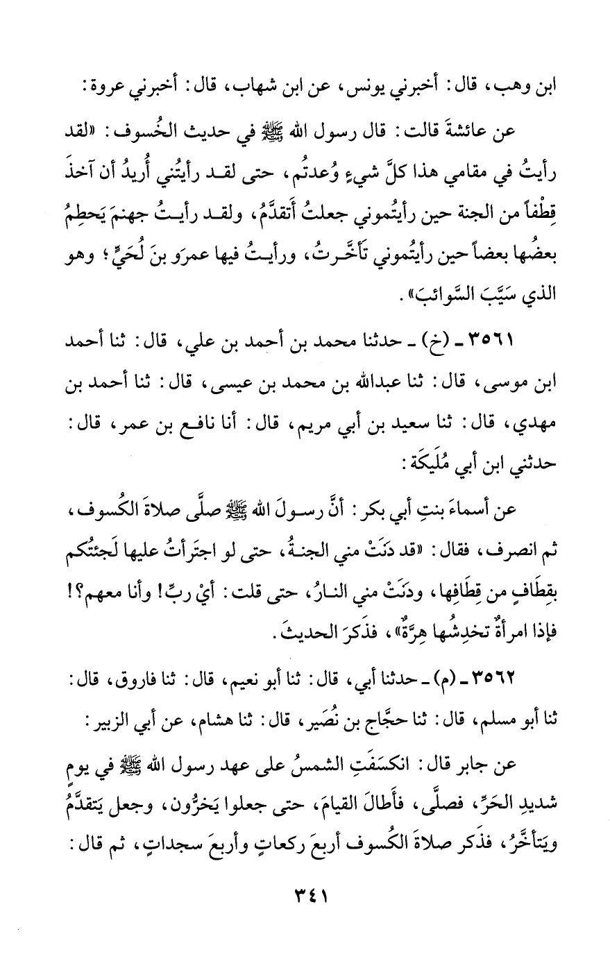 3561 - (خ) - حدثنا محمد بن أحمد بن علي، قال: ثنا أحمد بن موسى، قال: ثنا عبد الله بن محمد بن عيسى، قال: ثنا أحمد بن مهدي، قال: ثنا سعيد بن أبي مريم، قال: أنا نافع بن عمر، قال: حدثني ابن أبي مليكة: