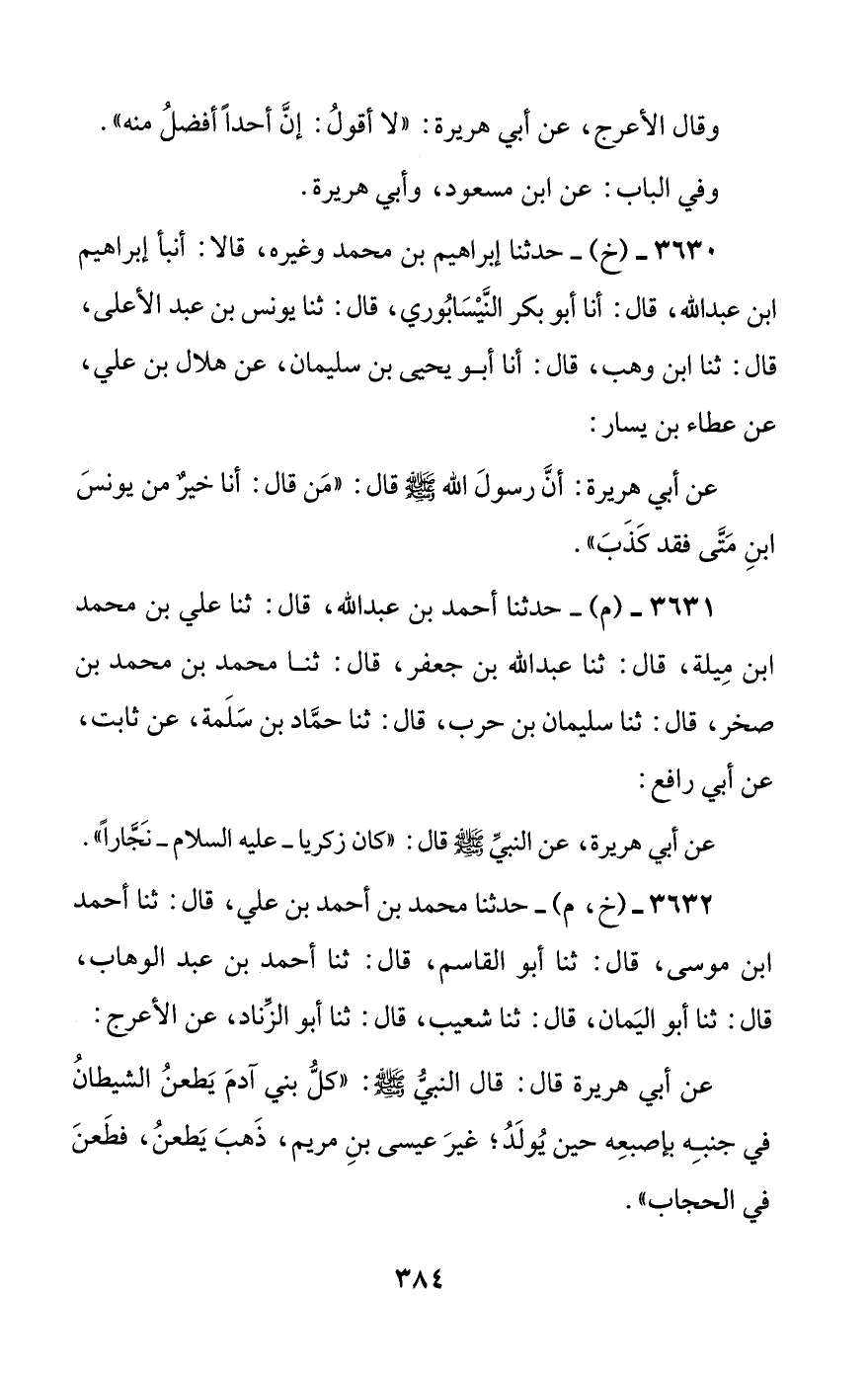 3632 - (خ، م) - حدثنا محمد بن أحمد بن علي، قال: ثنا أحمد بن موسى، قال: ثنا أبو القاسم، قال: ثنا أحمد بن عبد الوهاب، قال: ثنا أبو اليمان، قال: ثنا شعيب، قال: ثنا أبو الزناد، عن الأعرج: