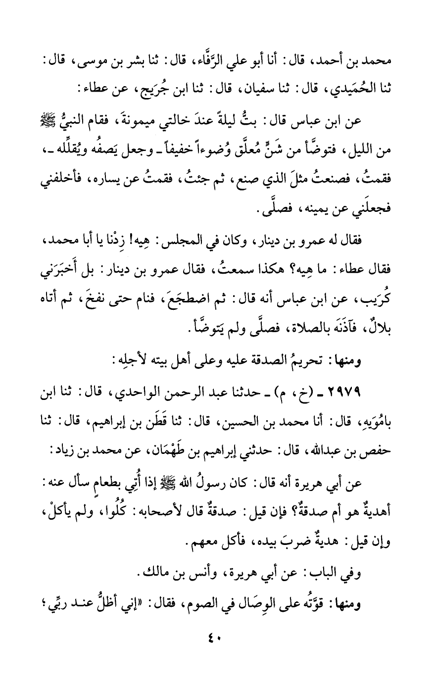 2979 - (خ، م) - حدثنا عبد الرحمن الواحدي، قال: ثنا ابن بامويه، قال: أنا محمد بن الحسين، قال: ثنا قطن بن إبراهيم، قال: ثنا حفص بن عبد الله، قال: حدثني إبراهيم بن طهمان، عن محمد بن زياد: