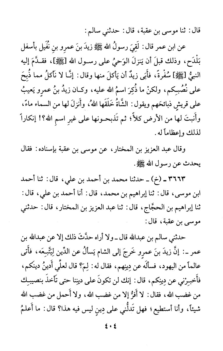 3663 - (خ) - حدثنا محمد بن أحمد بن علي، قال: ثنا أحمد بن موسى، قال: ثنا إبراهيم بن محمد، قال: أنا أحمد بن علي، قال: ثنا إبراهيم بن الحجاج، قال: ثنا عبد العزيز بن المختار، قال: حدثني موسى بن عقبة، قال: