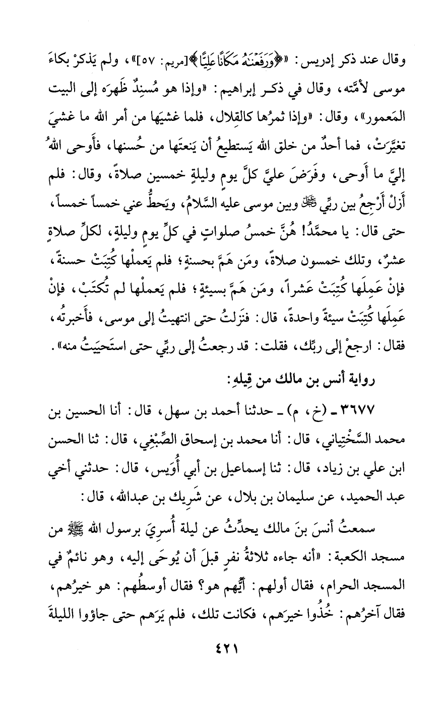 3677 - (خ، م) - حدثنا أحمد بن سهل، قال: أنا الحسين بن محمد السختياني، قال: أنا محمد بن إسحاق الصبغي، قال: ثنا الحسن بن علي بن زياد، قال: ثنا إسماعيل بن أبي أويس، قال: حدثني أخي عبد الحميد، عن سليمان بن بلال، عن شريك بن عبد الله، قال:
