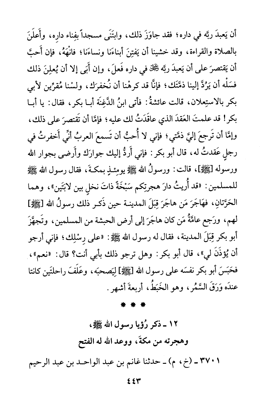 [12] ذكر رؤيا رسول الله صلى الله عليه وسلم، وهجرته من مكة، ووعد الله له الفتح