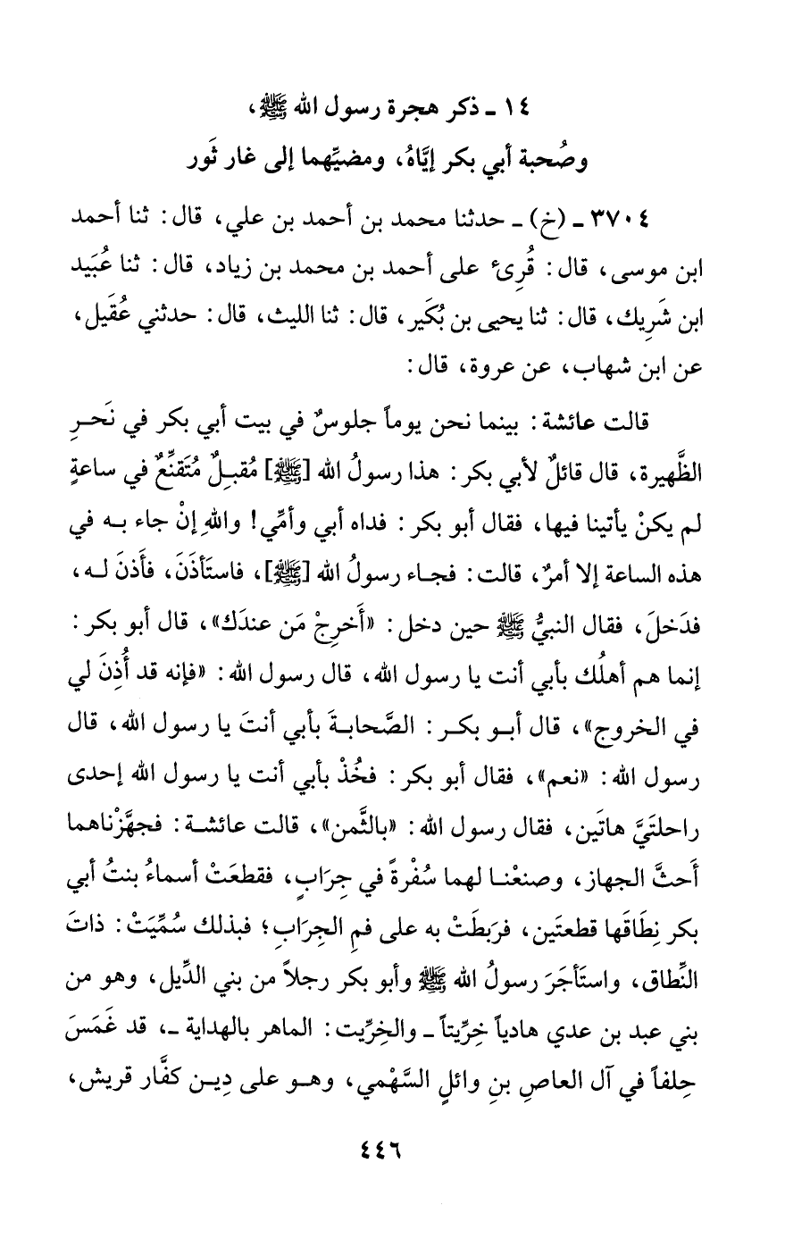 [14] ذكر هجرة رسول الله صلى الله عليه وسلم، وصحبة أبي بكر إياه، ومضيهما إلى غار ثور