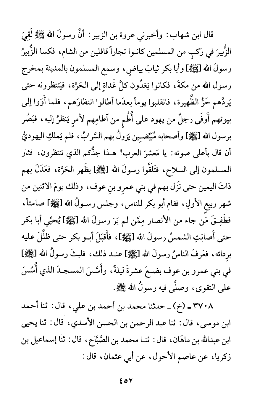3708 - (خ) - حدثنا محمد بن أحمد بن علي، قال: ثنا أحمد بن موسى، قال: ثنا عبد الرحمن بن الحسن الأسدي، قال: ثنا يحيى بن عبد الله بن ماهان، قال: ثنا محمد بن الصباح، قال: ثنا إسماعيل بن زكريا، عن عاصم الأحول، عن أبي عثمان، قال: