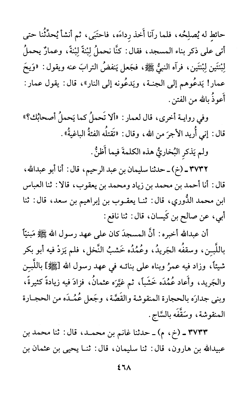 3732 - (خ) - حدثنا سليمان بن عبد الرحيم، قال: أنا أبو عبد الله، قال: أنا أحمد بن محمد بن زياد ومحمد بن يعقوب، قالا: ثنا العباس بن محمد الدوري، قال: ثنا يعقوب بن إبراهيم بن سعد، قال: ثنا أبي، عن صالح بن كيسان، قال: ثنا نافع: