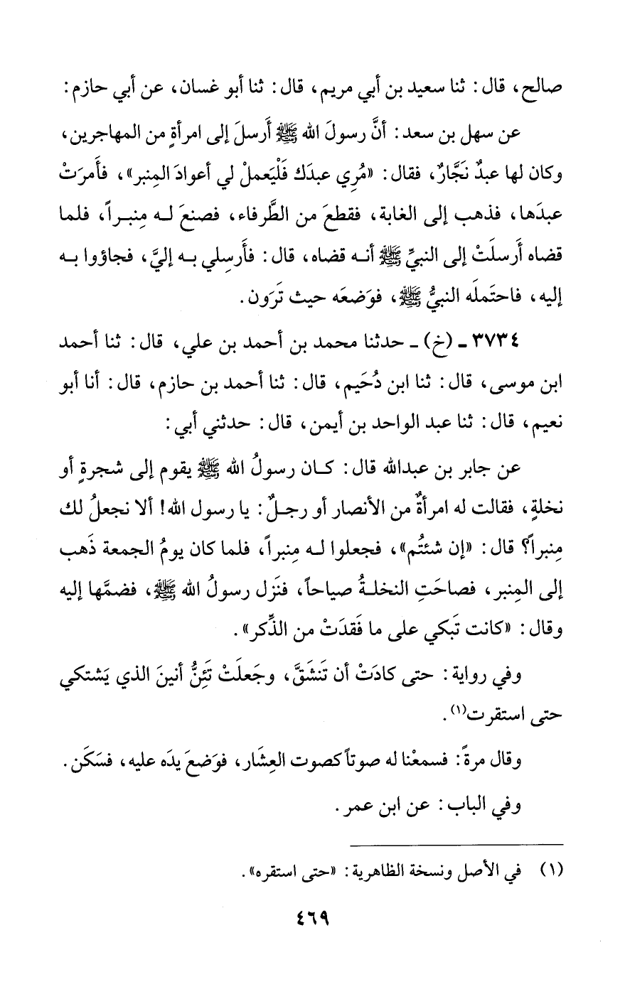 3734 - (خ) - حدثنا محمد بن أحمد بن علي، قال: ثنا أحمد بن موسى، قال: ثنا ابن دحيم، قال: ثنا أحمد بن حازم، قال: أنا أبو نعيم، قال: ثنا عبد الواحد بن أيمن، قال: حدثني أبي: