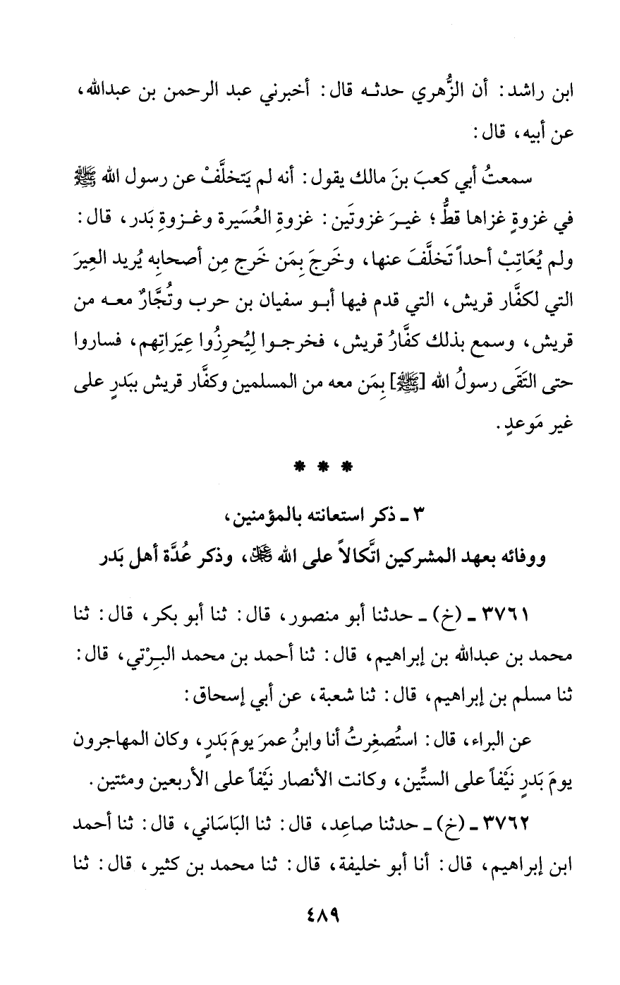 3762 - (خ) - حدثنا صاعد، قال: ثنا الباساني، قال: ثنا أحمد بن إبراهيم، قال: أنا أبو خليفة، قال: ثنا محمد بن كثير، قال: ثنا #490# سفيان، عن أبي إسحاق: