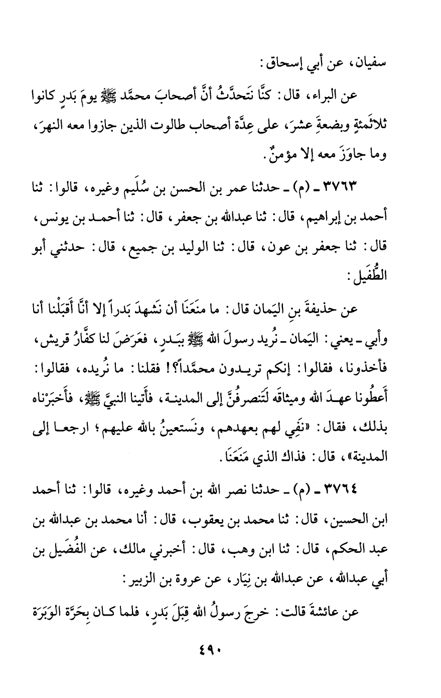 3764 - (م) - حدثنا نصر الله بن أحمد وغيره، قالوا: ثنا أحمد بن الحسين، قال: ثنا محمد بن يعقوب، قال: أنا محمد بن عبد الله بن عبد الحكم، قال: ثنا ابن وهب، قال: أخبرني مالك، عن الفضيل بن أبي عبد الله، عن عبد الله بن نيار، عن عروة بن الزبير: