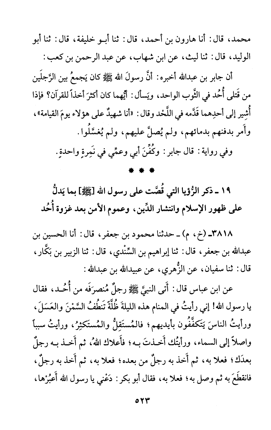 [19] ذكر الرؤيا التي قصت على رسول الله [صلى الله عليه وسلم] بما يدل على ظهور الإسلام وانتشار الدين، وعموم الأمن بعد غزوة أحد