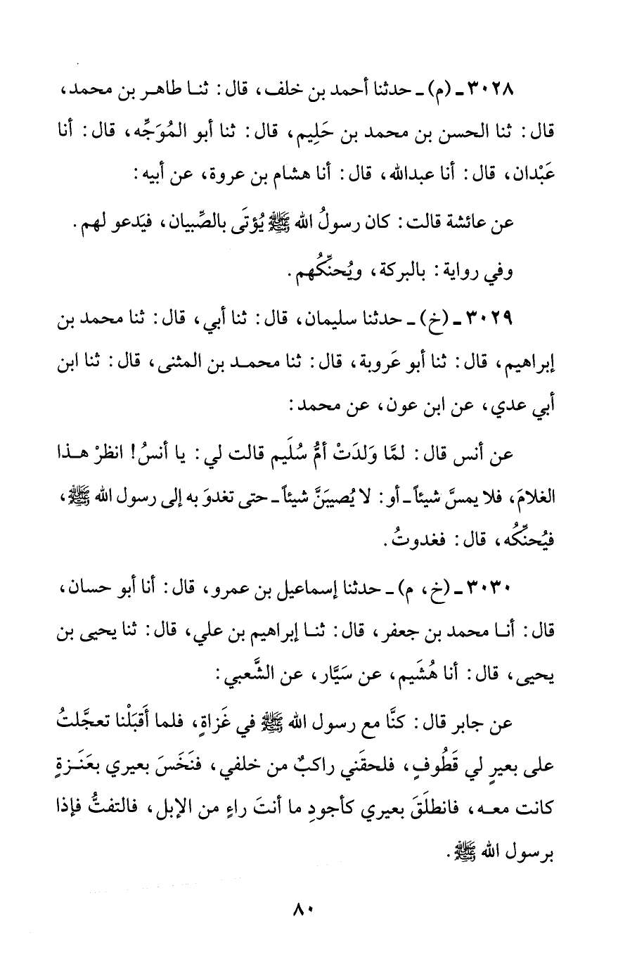 3030 - (خ، م) - حدثنا إسماعيل بن عمرو، قال: أنا أبو حسان، قال: أنا محمد بن جعفر، قال: ثنا إبراهيم بن علي، قال: ثنا يحيى بن يحيى، قال: أنا هشيم، عن سيار، عن الشعبي: