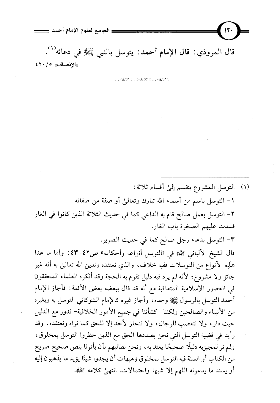 (¬1) التوسل المشروع ينقسم إلى أقسام ثلاثة: