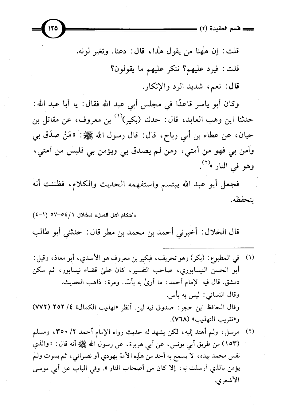 "أحكام أهل الملل" للخلال 1/ 54 - 57 (1 - 4)