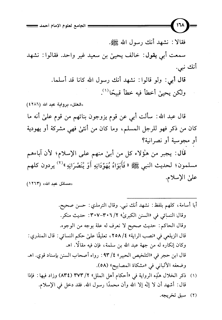 سمعت أبي يقول: خالف يحيى بن سعيد غير واحد. فقالوا: نشهد أنك نبي.