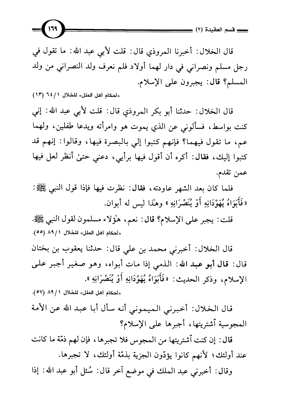 "أحكام أهل الملل" للخلال 1/ 89 (57).