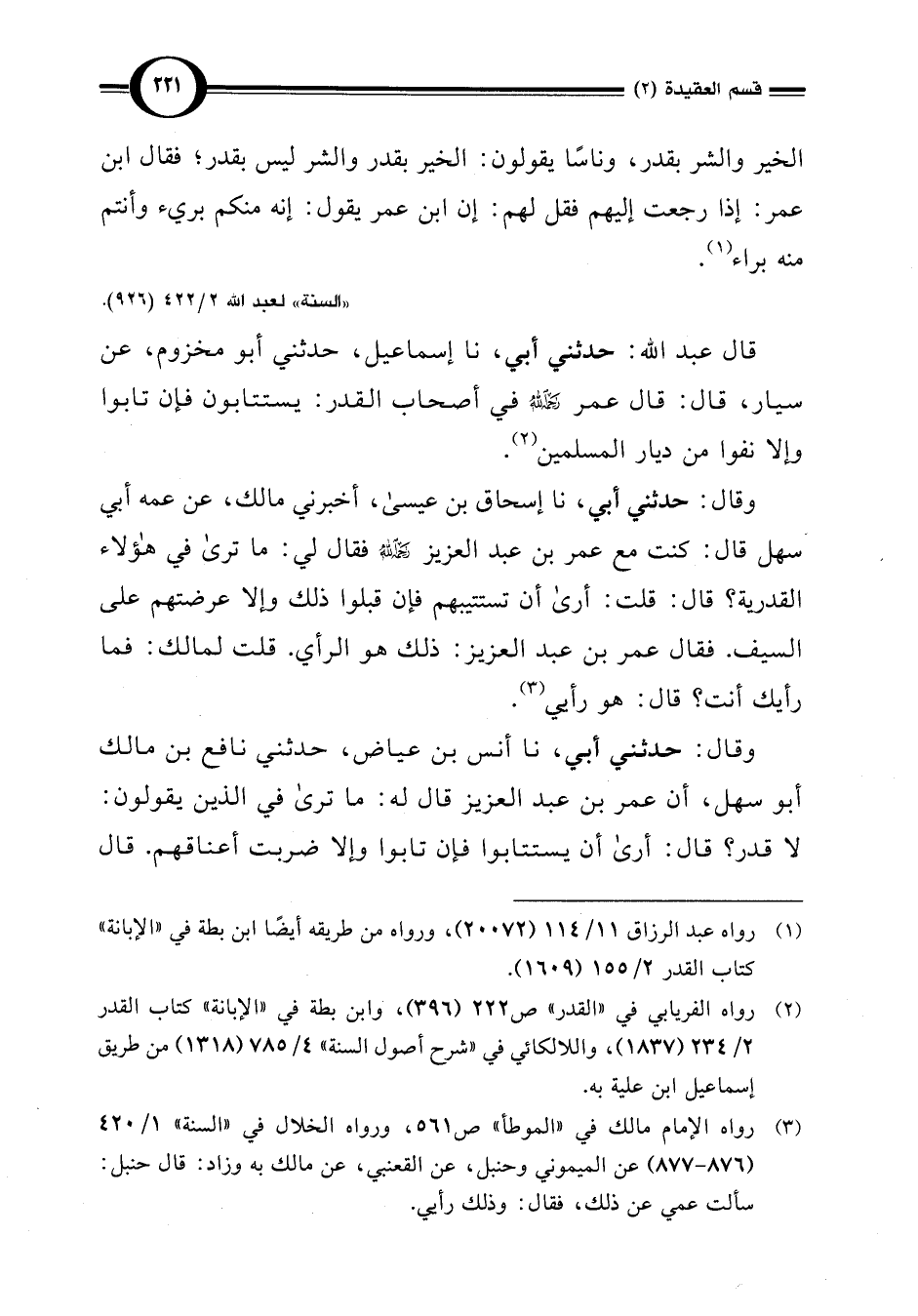 (¬3) رواه الإمام مالك في "الموطأ" ص 561، ورواه الخلال في "السنة" 1/ 420 (877 - 876) عن الميموني وحنبل، عن القعنبي، عن مالك به وزاد: قال حنبل: سألت عمي عن ذلك، فقال: وذلك رأيي.
