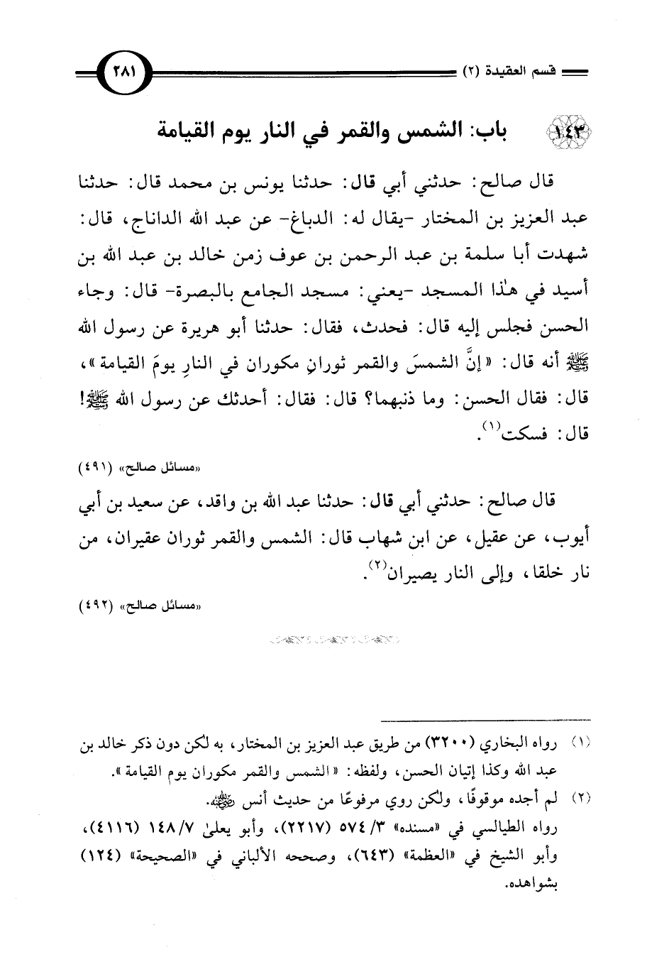 143 - باب: الشمس والقمر في النار يوم القيامة