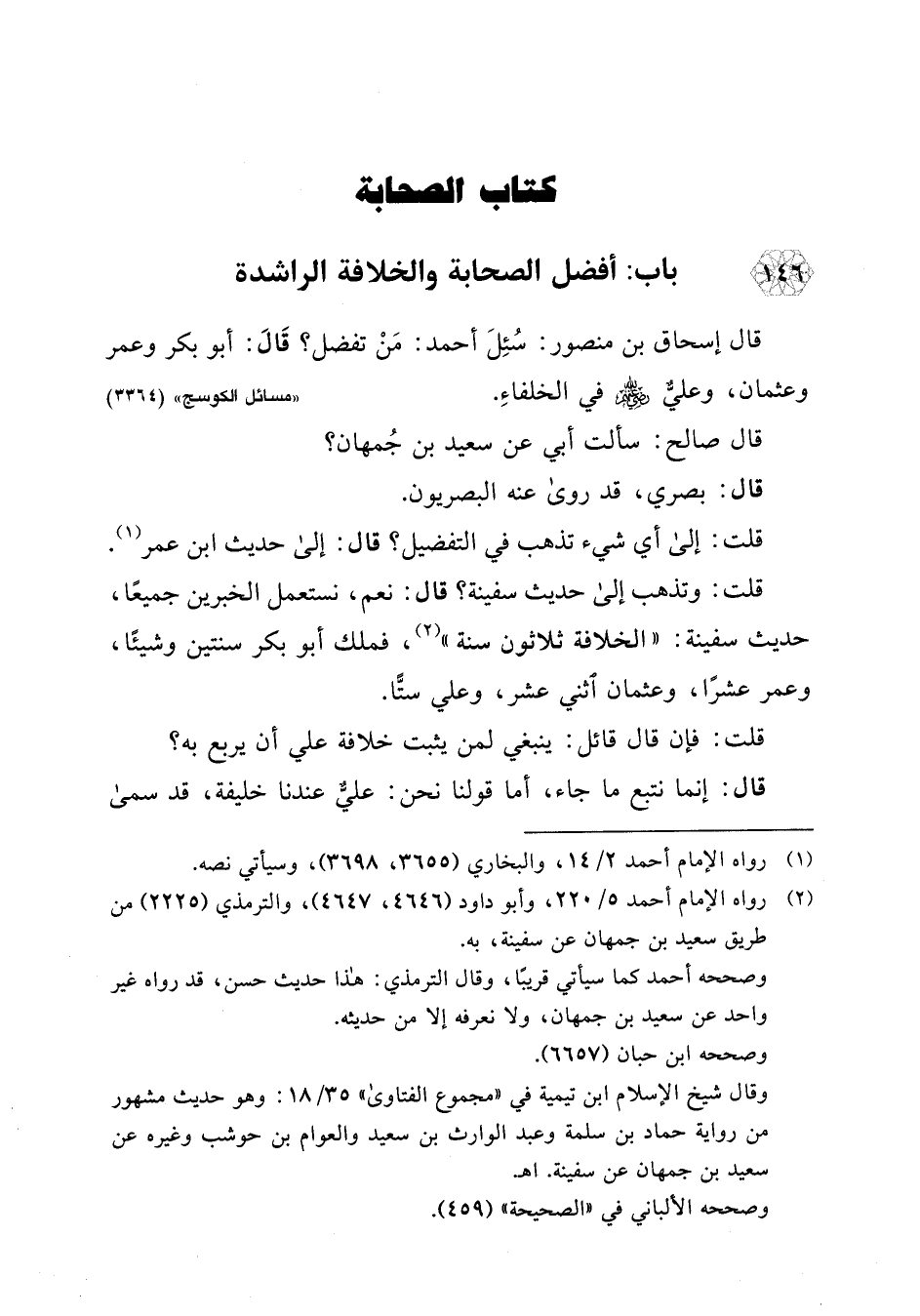 146 - باب: أفضل الصحابة والخلافة الراشدة