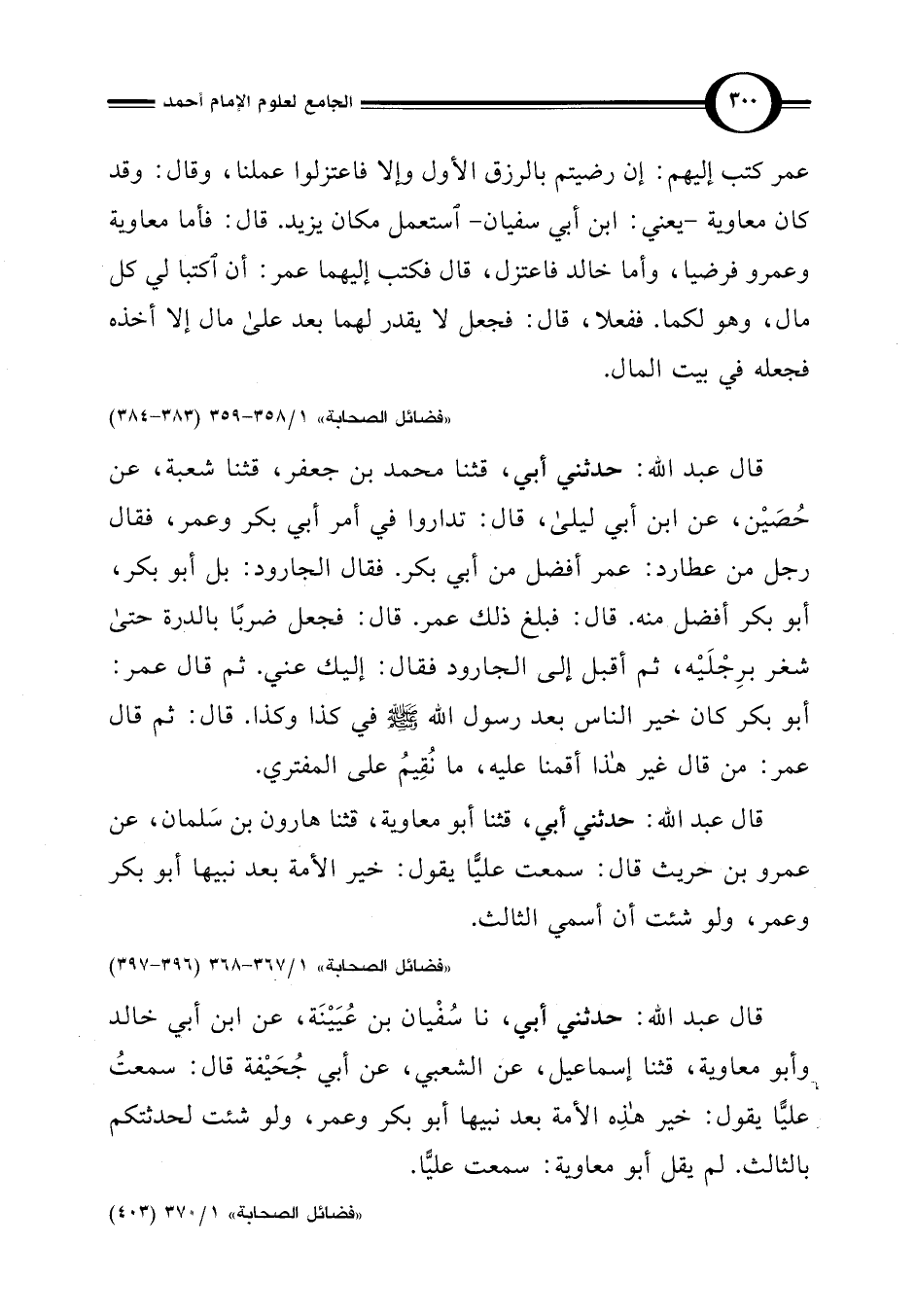 "فضائل الصحابة" 1/ 367 - 368 (396 - 397)