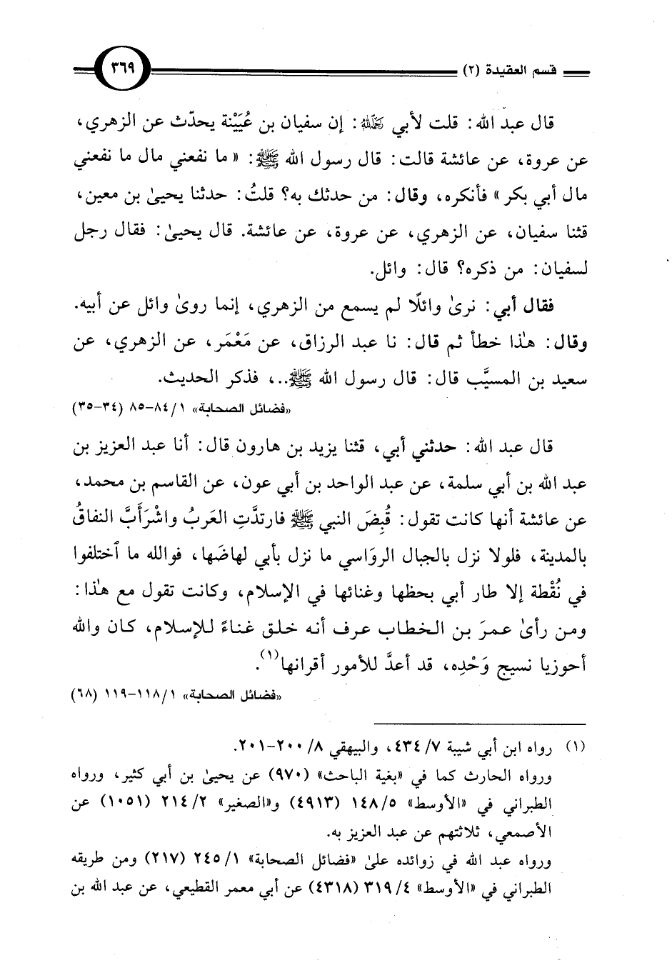 "فضائل الصحابة" 1/ 118 - 119 (68)