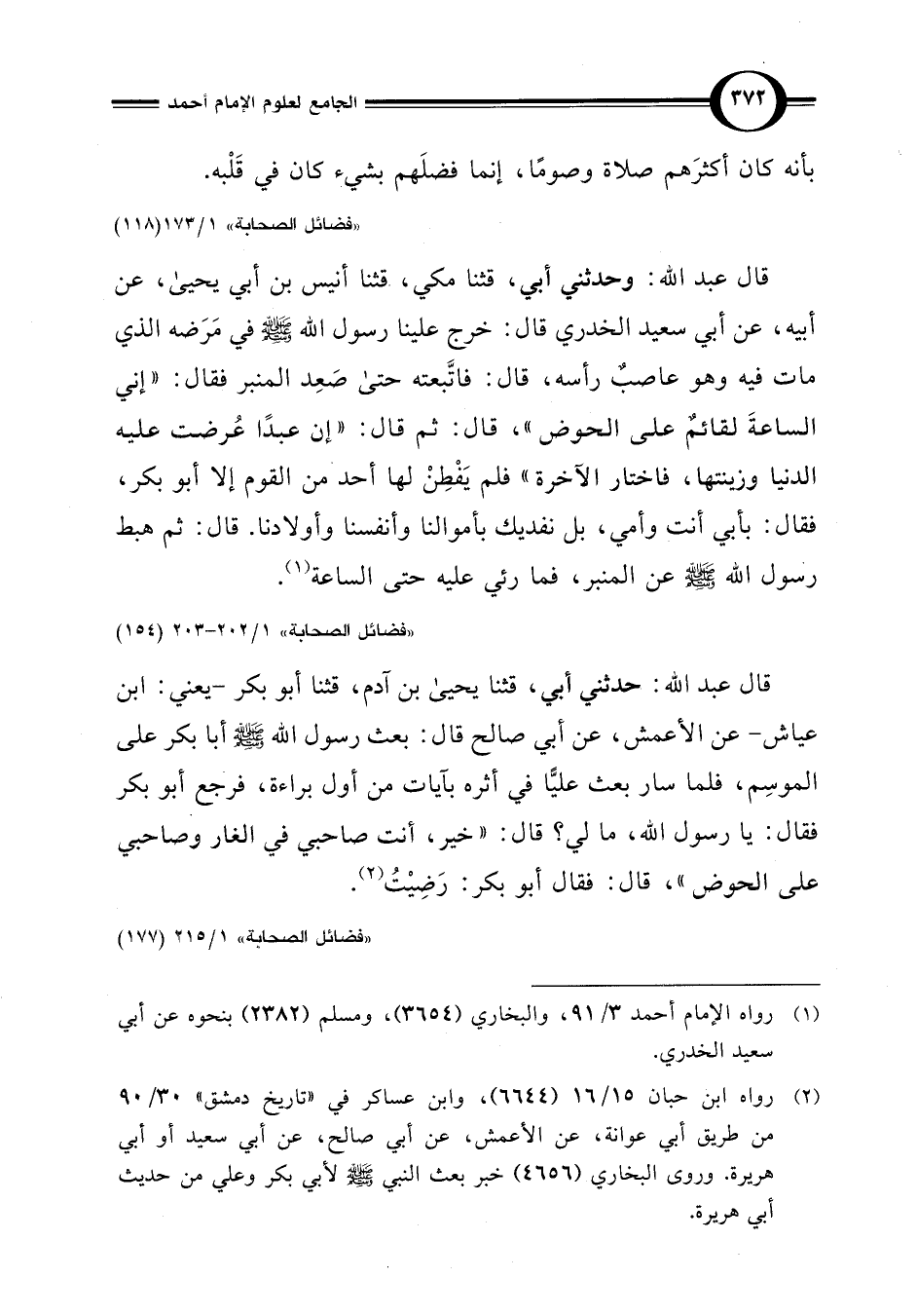 "فضائل الصحابة" 1/ 202 - 203 (154)