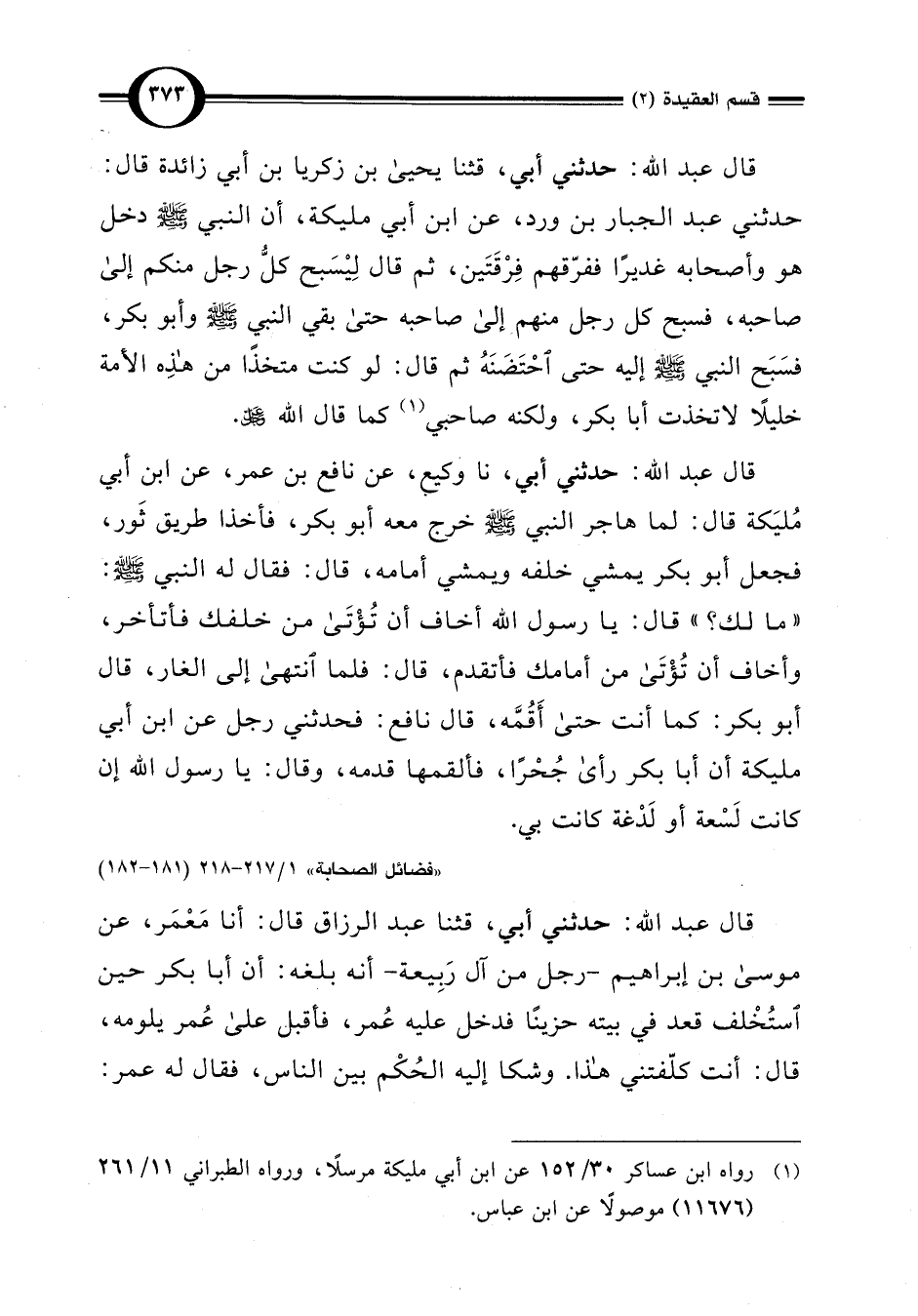 "فضائل الصحابة" 1/ 217 - 218 (181 - 182)
