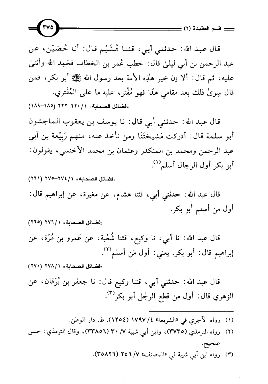 "فضائل الصحابة" 1/ 220 - 222 (185 - 189)