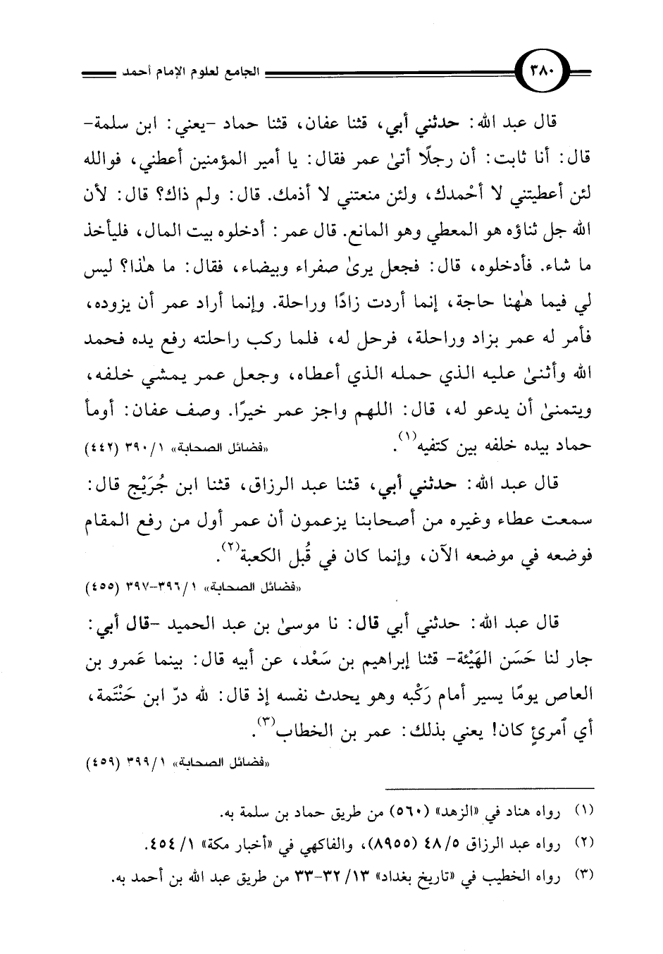 "فضائل الصحابة" 1/ 396 - 397 (455)