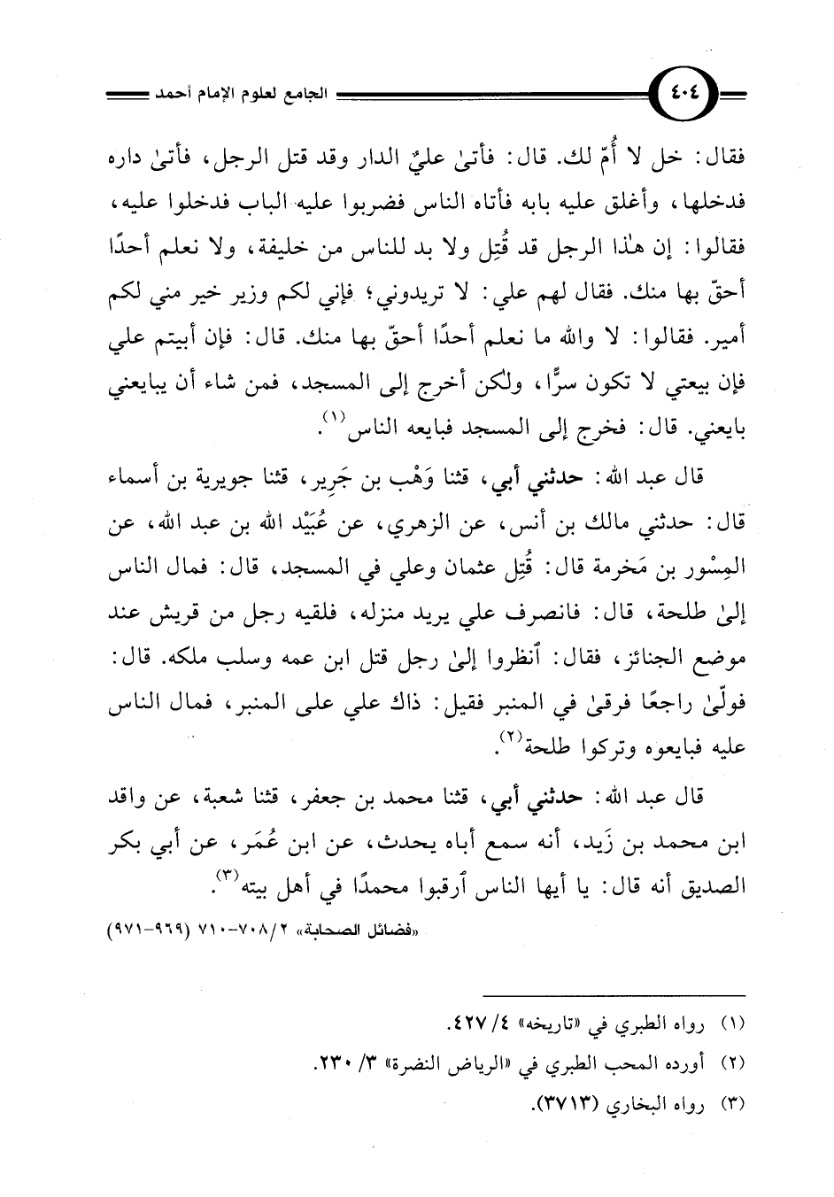 "فضائل الصحابة" 2/ 708 - 710 (969 - 971)
