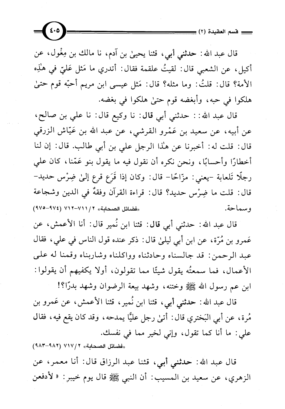 "فضائل الصحابة" 2/ 711 - 712 (974 - 975)