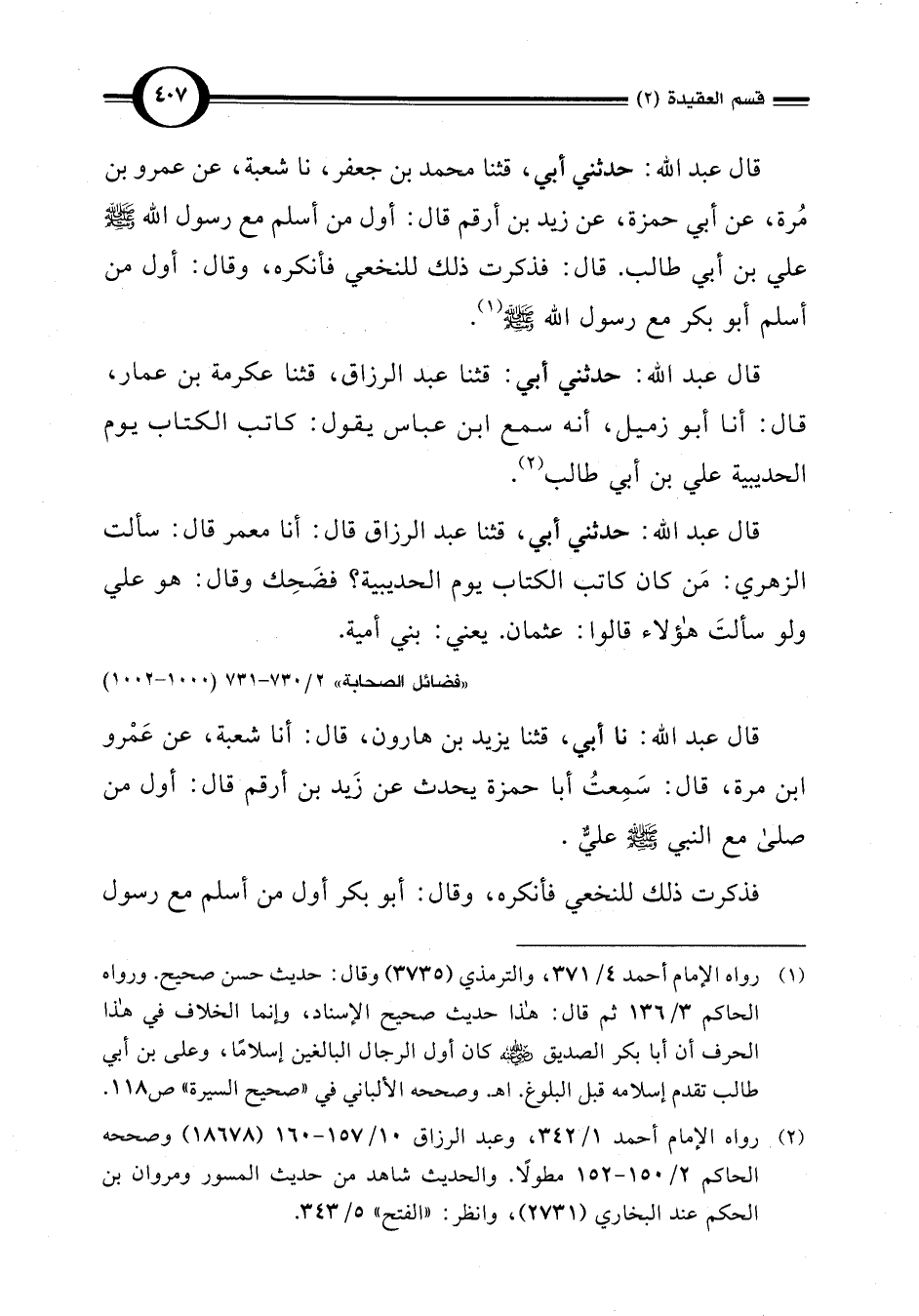 "فضائل الصحابة" 2/ 730 - 731 (1000 - 1002)