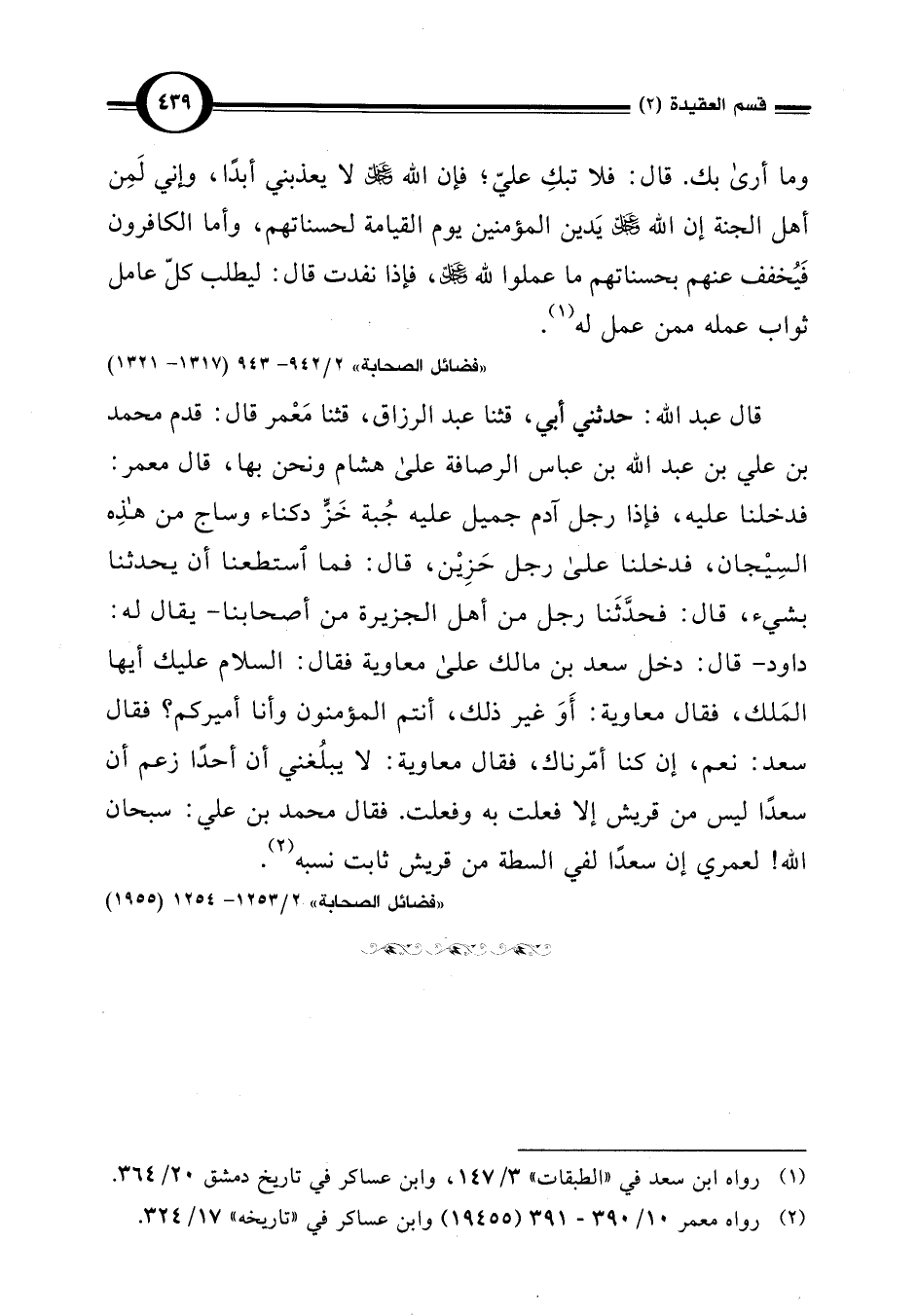 "فضائل الصحابة" 2/ 942 - 943 (1317 - 1321)