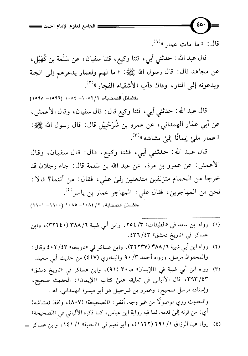 "فضائل الصحابة" 2/ 1084 - 1085 (1600 - 1601)